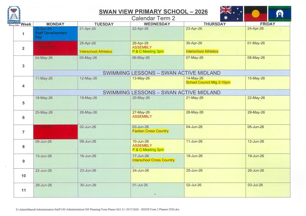 Swimming lessons will commence in Week 3 next term at Swan Active. Notes will be sent home next week with further information.